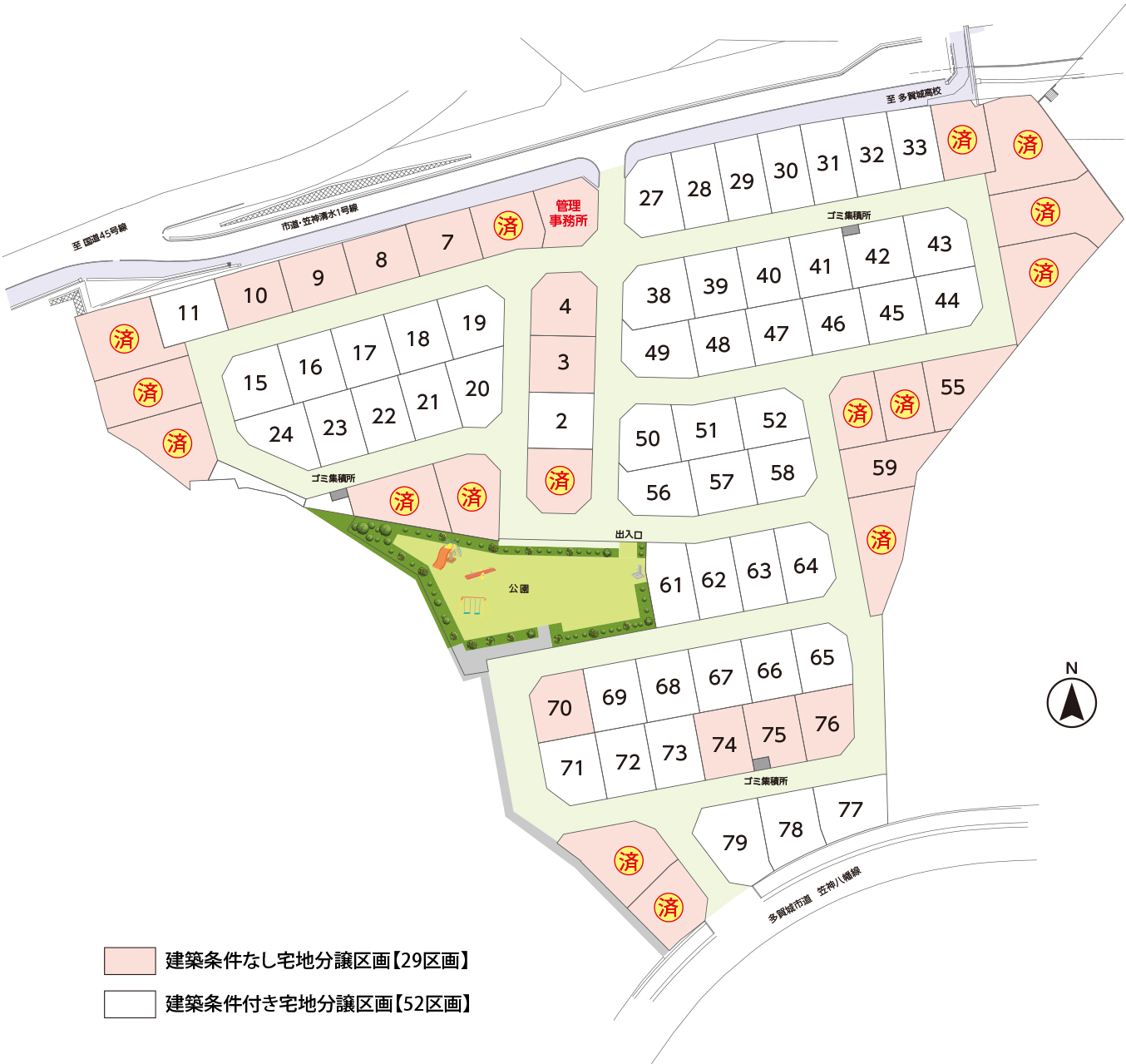 ※「建築条件付き宅地分譲区画【52区画】」の販売ハウスメーカー・区画番号につきましては、「お問い合わフォーム」またはお電話にてお問い合わせください。
