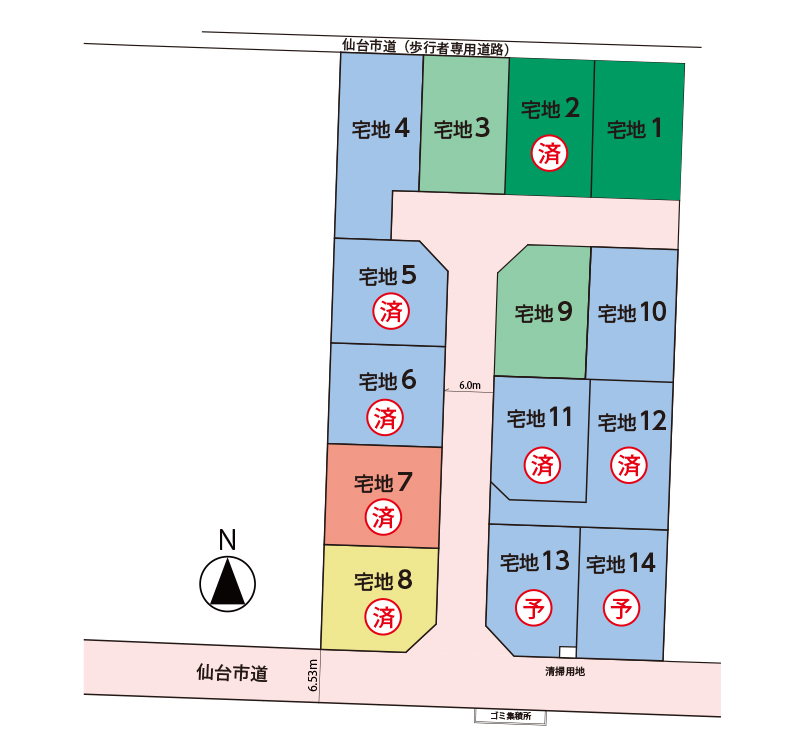 仙台市営バス「沖野小学校前」バス停:徒歩約2分(約150m) - 開発面積